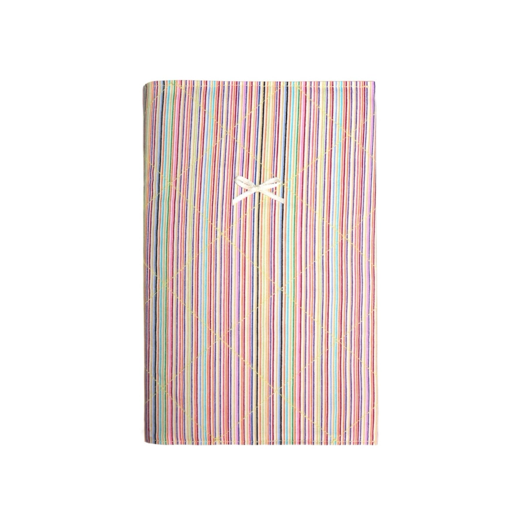 Joseph's Coat is made with a multicolored striped cotton fabric, butter yellow cotton lining and baby yellow ribbon details.