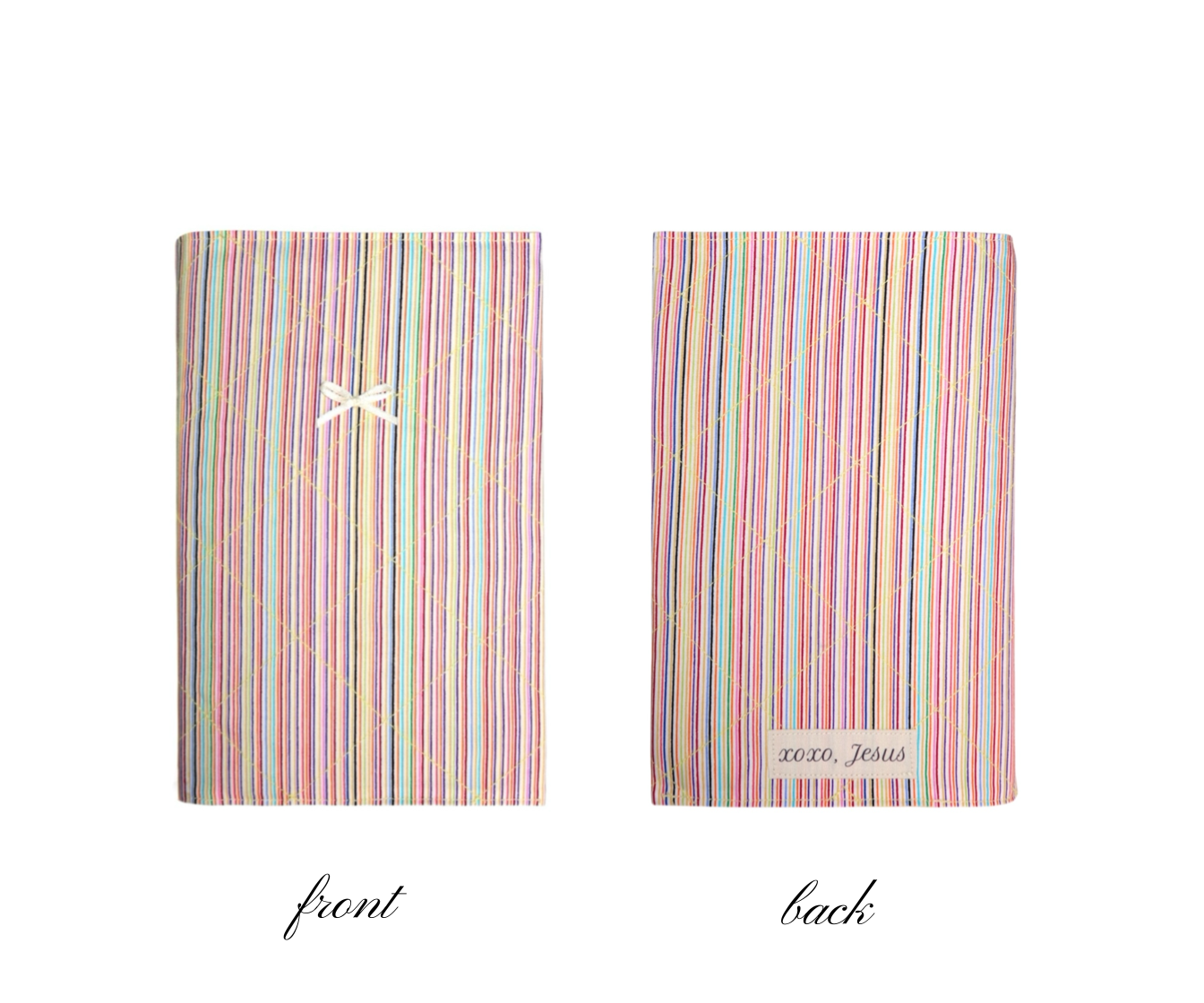 The 'love letters' bible cover is made to cover the word of God but can be used to cover your words of gratitude back to Him too. Browse through our size chart to found a fitting size for your prayer journal. Pair with the 'xoxo, Jesus' bible cover for the loveliest devotional duo.