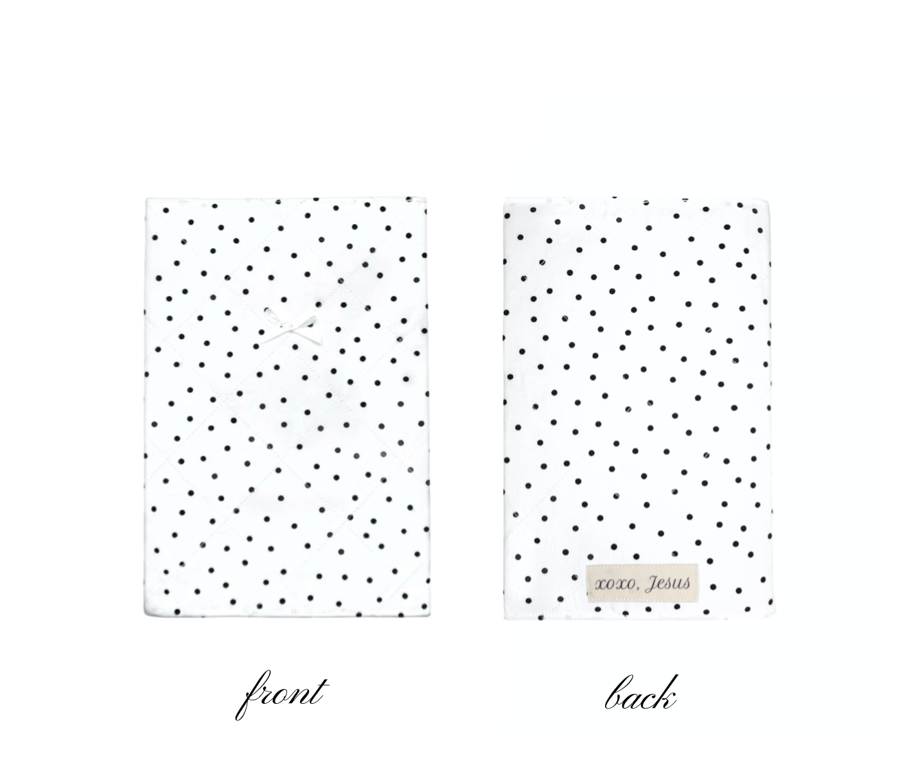 The 'love letters' bible cover is made to cover the word of God but can be used to cover your words of gratitude back to Him too. Browse through our size chart to found a fitting size for your prayer journal. Pair with the 'xoxo, Jesus' bible cover for the loveliest devotional duo.
